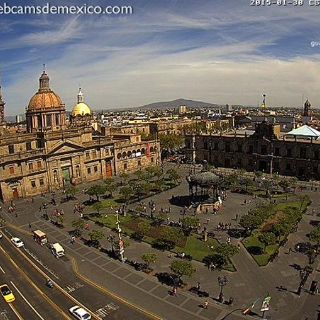 Desde esta cámara se aprecia un costado de la Catedral Metropolitana, la totalidad de la Plaza de Armas con su kiosco centenario traído de París, y el frente del Palacio de Gobierno.