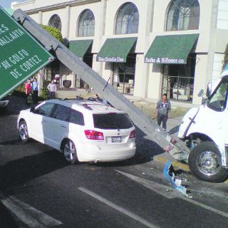 La energía del choque fue suficiente para empujar el camión contra un señalamiento vial y derribó el poste que anuncia la Glorieta La Minerva y otras avenidas, mismo que posteriormente cayó sobre una camioneta blanca, Dodge Journey.