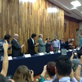 Arturo Medina, presidente de la Federación de Estudiantes Universitarios (FEU); Héctor Raúl Pérez Gómez, Director del OPD Hospitales Civiles de Guadalajara; y Pablo Lemus Navarro, alcalde de Zapopan, firmaron un convenio para el proyecto "Home", el cual ofrecerá servicios de salud, higiene, derechos humanos, comunicación, educación y alimentación.