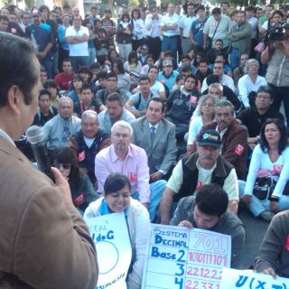 GUADALAJARA, JALISCO (11/OCT/2010).- Esta mañana, estudiantes y profesores del Centro Universitario de Ciencias Exactas e Ingenierías (CUCEI) de la Universidad de Guadalajara ( UdeG), recibieron clases de Matemáticas y de Medio Ambiente a las afueras de Casa Jalisco, que marcaron el inicio del cambio de estrategia de la Universidad para exigir al Gobierno del Estado entregue los 701 millones de pesos de contrapartidas federales pendientes desde hace tres años y los 390 MDP que completen los 520 de ampliación presupuestal solicitada a principios de año.