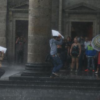Lluvia vespertina sorprende a paseantes del Centro Histórico