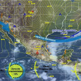 En cuanto a la nueva onda tropical, posiblemente la número 37, cruzará la Península de Yucatán en el transcurso del día y, en consecuencia, generará precipitaciones muy fuertes en el occidente de Oaxaca y el norte y oriente de Guerrero.