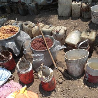 Además, incautaron tres galones de tíner, tres tanques de gas, dos tinas coladera, dos contenedores, dos básculas y dos tanques de oxígeno.