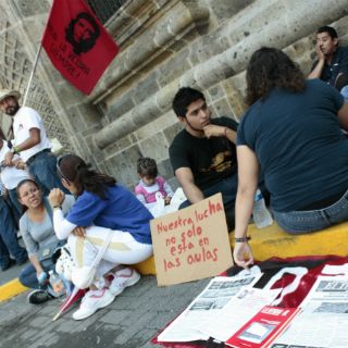 A la protesta se unieron alumnos y padres de familia de la telesecundaria y primaria del municipio de Ixcatán; solicitan que se mejoren las condiciones en las aulas, por lo que entregaron un pliego petitorio al Ejecutivo de Jalisco.