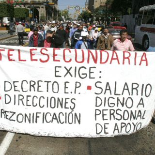 GUADALAJARA, JALISCO (24/JUN/2010).- La manifestación de maestros de telesecundarias que partió desde la glorieta de la Normal, afectará la circulación vial en tres carriles de avenida Alcalde.