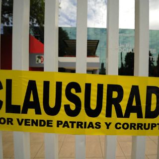 El nutrido bloque de manifestantes avanzó a las 11:00 de Plaza Juárez, hizo un circuito por Avenida del Campesino para pasar por la sede del PRI estatal y colocar el primer "sello de clausura" en la puertas exteriores, a la voz de "esos son los que roban la nación", aludiendo al partido en el poder.
