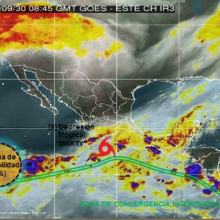 CIUDAD DE MÉXICO (30/SEP/2015).- "Marty", ahora como depresión tropical, continúa su debilitamiento muy cerca de las costas de