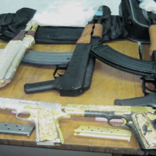 A través de un comunicado de prensa, la Secretaría de la Defensa Nacional (Sedena), informó que mediante patrullajes terrestres y atención a denuncias ciudadanas, los soldados detuvieron en las calles de la Colonia Los Gavilanes, en Tlajomulco de Zúñiga, a cuatro personas, de las cuales no reveló identidad, además del aseguramiento de un fusil de asalto tipo AK-47, calibre 7.62 x 39, de los conocidos como “cuernos de chivo”; dos armas cortas calibre .45, y una pistola tipo escuadra, del calibre .38 súper, todas las armas estaban chapeadas en oro y plata, esta última también tenía incrustaciones de diamantes y piedras preciosas.