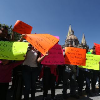 Con consignas como "¡Queremos trabajo, queremos una solución!", "¡Basta de operativos!", además de pancartas con mensajes como "Personas discapacitadas, de la tercera edad y estudiantes de Ameca exigimos mototaxis", los manifestantes, en su mayoría provenientes de municipios del interior del estado, demandaron la presencia de las autoridades.