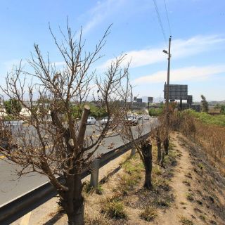Árboles secos y otros tantos quemados dan la bienvenida a los automovilistas que entran a la ciudad