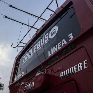 trolebuses de la ruta 400, ahora Línea 3 de Sitren, comenzaron a rodar esta tarde en su derrotero normal. En avenida Hidalgo, frente al Mercado Corona donde está en proceso la construcción de una