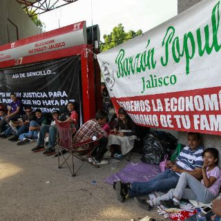 El coordinador platica que existe el caso de una persona que estuvo pagando por más de 18 años, y su crédito fue por 15, y no se les han liberado sus escrituras. Los cerca de 100 protestantes, procedentes de la Zona Metropolitana de Guadalajara, llegaron al lugar desde las 09:00 horas en cuatro autobuses. "No nos vamos de aquí hasta que tengamos un acuerdo".