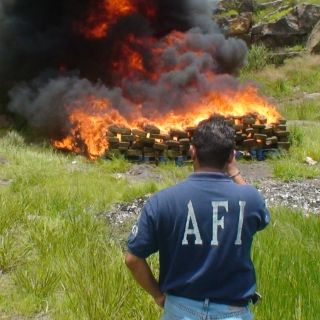 GUADALAJARA, JALISCO (06/AGO/2010).- Este miércoles en las instalaciones del Club Cinegético de la Venta del Astillero, elementos de la PGR se encargaron de la incineración de más de dos toneladas de