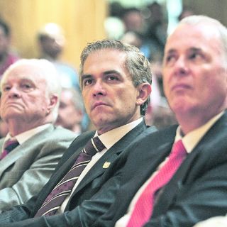 Invitados. El jefe de Gobierno del DF (centro) y el ex rector Raúl Padilla López (derecha) estuvieron entre los invitados a la ceremonia con el nuevo rector general.
