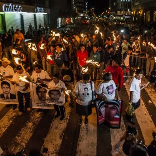 19:00 El contingente arriba a 16 de septiembre y Avenida Juárez, donde prenden 43 antorchas en honor a los desaparecidos.