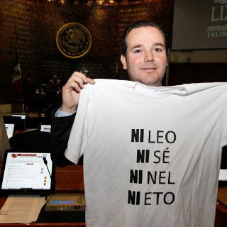 GUADALAJARA, JALISCO (08/DIC/2011).- Los diputados de la fracción parlamentaria del PAN, portaron playeras blancas con letras negras alusivas a las decenas de chistes y frases que circulan en redes sociales y que hacen referencia al reciente episodio en el que el candidato a la presidencia de la República por el PRI, Enrique Peña Nieto no recordó tres libros que macaron su vida en el marco de la FIL.
