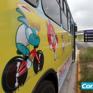 El colorido camión circula con mensajes como: “Deja tu carro, nosotros te llevamos”.