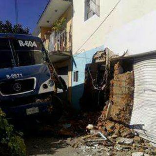 Los vehículos pegan contra un poste y el autobús termina impactado contra una finca, lo que ocasionó daños estructurales
