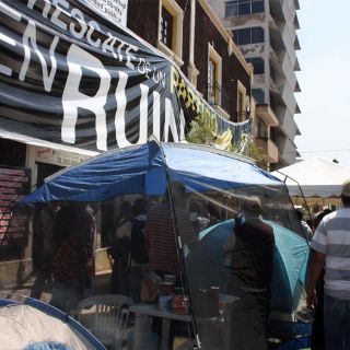 Las recientes bardas de ladrillo, las casas de campaña junto a estas y las decenas de pancartas que se encuentran a las afueras del número 111 de la calle Pavo, en el Centro de Guadalajara, no carecen de vida, toda vez que los simpatizantes perredistas de esta corriente antagónica a la del dirigente Antonio Magallanes se han dado a la tarea de “revivir” la zona, haciendo uso de las bellas artes.