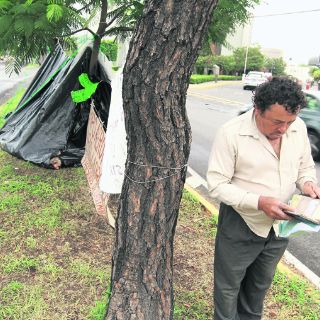 Bernardo está “cansado” de que no prospere su caso y por eso decidió manifestar su inconformidad con una acampada, que permanecerá hasta que haya resolución. Cuenta que hace dos años fue despedido “injustificadamente” por Construcciones y Supervisión CGH, empresa que desarrollaba obra para el Grupo Aeroportuario del Pacífico (GAP). Un mes después, el 19 de agosto de 2011 interpuso una demanda ante la Junta de Conciliación y Arbitraje local contra ambos corporativos, pero no ve respuesta alguna.