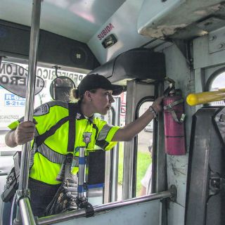 Es la primera ocasión que lo inspeccionan las mujeres de la Policía Vial que revisan al transporte público. Le detectaron a la unidad la falta de un timbre, un cristal frontal estrellado y un asiento quebrado, dijo.