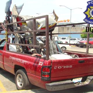 En otro punto localizado sobre la finca 554, de la calle Violeta a su cruce con Silva Romero, se aseguró una camioneta tipo pick up, marca Ram, en color roja, con placas de circulación JR-160, del Estado de Jalisco, ya que estaba cargada con defensas y demás partes automotrices de diferentes vehículos.