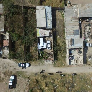 Dentro del terreno también fue observada una camioneta Nissan Urvan sin placas.