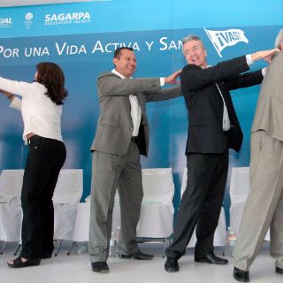 El objetivo del movimiento, impulsado por dos activadores físicos, fue el de resaltar la actividad física, al menos 20 minutos diarios, para evitar enfermedades y llevar una buena calidad de vida, mencionó el secretario de Salud Jalisco, Alfonso Petersen Farah, quien no se la pensó para comenzar el ejercicio.