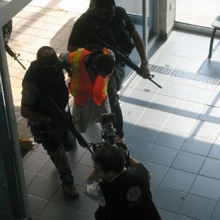 GUADALAJARA, JALISCO (08/DIC/2011).- La tarde de este jueves, en las instalaciones de la Procuraduría General de Justicia del Estado de Jalisco (PGJEJ) fueron presentados ante los medios de comunicación, tres presuntos responsables de los homicidios de las 26 personas que fueron encontradas sin vida en tres camionetas en los Arcos del Milenio de Guadalajara, el pasado 24 de noviembre.