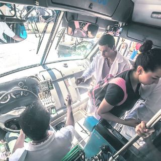 La unidad que conduce ya cuenta con cuatro cámaras, GPRS, incluso el equipo de prepago cuyo uso no se generalizó entre las cinco mil 179 unidades del transporte público que circulan en la metrópoli. Para cumplir con los requisitos exigidos por el Ejecutivo estatal para obtener el aumento a la tarifa del camión hay pendientes: los dos choferes entrevistados manifiestan no tener la nueva capacitación y certificación correspondiente; tampoco tienen instalados los letreros electrónicos.
