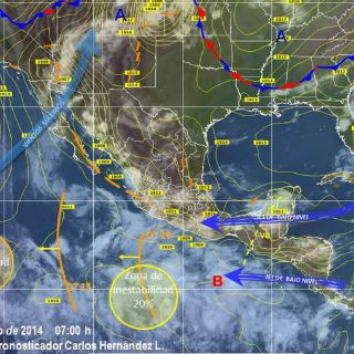 En el sureste del territorio, una zona de inestabilidad se asociará con la afluencia de humedad del mar Caribe y del Golfo de México, lo que causará el desarrollo de nublados con lluvias fuertes a muy fuertes acompañadas de actividad eléctrica sobre Chiapas y Tabasco, además de lluvias de menor intensidad en la Península de Yucatán.