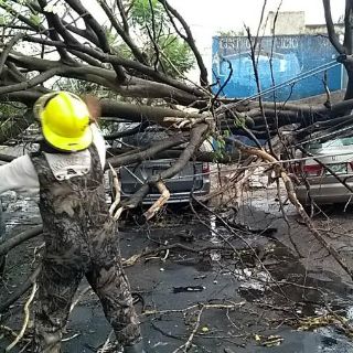 En Mariano Otero a la altura de Plaza del Sol cayó un árbol sobre un auto; paramédicos y bomberos debieron intervenir para ayudar a los tres ocupantes, y debieron partir con sierras las ramas para sacar al conductor.