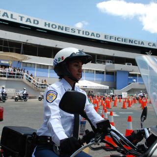 Montada en la motocicleta en el patio de la Secretaría de Vialidad, donde el grupo de graduados hizo una demostración de sus habilidades, Adriana comentó que ha sido todo un reto la conducción de este vehículo. Sobre sus experiencias en la calle, con los ciudadanos, dijo que ha sido buena, aunque la gente está habituada a tratar con agentes varones.