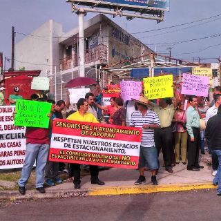 ZAPOPAN, JALISCO (06/AGO/2013).- Alrededor de 100 comerciantes y vecinos de la colonia Santa Margarita y aledañas, se reunieron esta mañana en el cruce de Periférico y avenida Santa Margarita, para manifestarse en contra de la ciclovía que se construye en la zona.