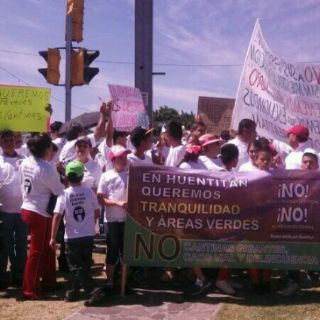 Los vecinos que portaban camisetas con la leyenda "No a las casas Huevito", mostraron pancartas y entregaron volantes informativos a transeúntes y automovilistas que pasaban por el lugar.