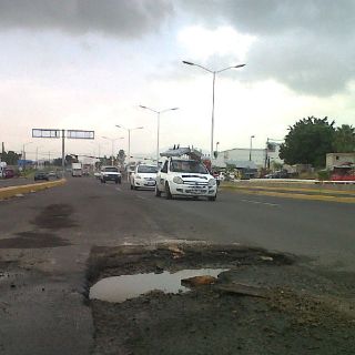 Diversos hoyos se han formado en la carpeta asfáltica que quedó rehabilitada a totalidad desde febrero pasado. Pero los baches han llegado ya al puente elevado que inauguró el gobernador del Estado, Emilio González Márquez, en septiembre de 2011.