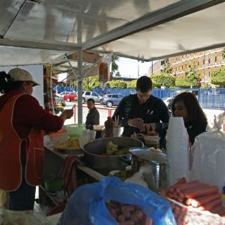GUADALAJARA, JALISCO (19/ENE/2016).- En la banqueta Sur de la Avenida de los Maestros, fuera del Centro Universitario de Ciencias Sociales y Humanidades (CUCSH), hay 23 puestos comerciales que ofrecen en su mayoría comida.