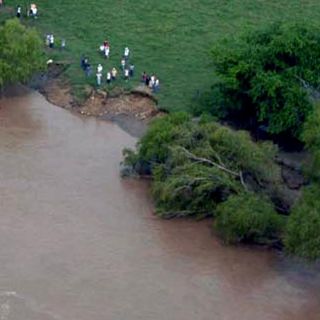 Tres menores, cuyas edades son siete, cinco y cuatro años, al igual que sus progenitores, fueron puestos a salvo después de que los esforzados socorristas formaron una cadena para impedir que la corriente del arroyo los arrastrara.