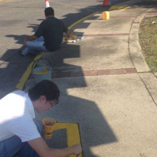En la glorieta del Ingenieros trabajaron funcionarios de la Secretaría de Infraestructura y Obra Pública, todavía sin involucrar a los vecinos de la zona. Los servidores públicos llevaron su propia brocha y pintura para remozar este lugar.