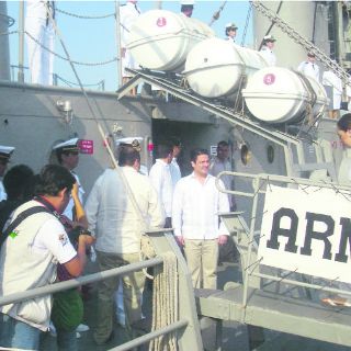 Posteriormente, los festejados y las autoridades estatales abordaron la corbeta “Doblado” para surcar las aguas de la bahía y realizar los honores en recuerdo de los marinos que han perdido la vida en cumplimiento del deber.