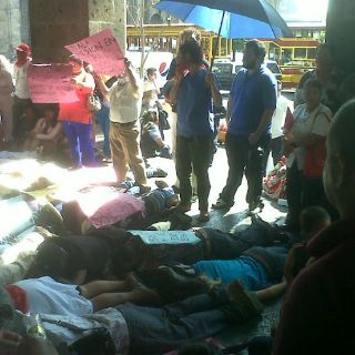El mismo grupo que antes cerró calles ahora se postra a las puertas del Palacio Municipal
