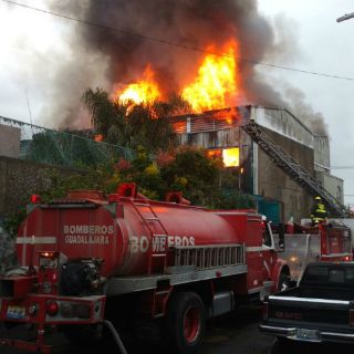 El incendio estaba propagado en el segundo nivel de la bodega y hasta el momento no se reportan personas lesionadas, según informó Bomberos Guadalajara.
