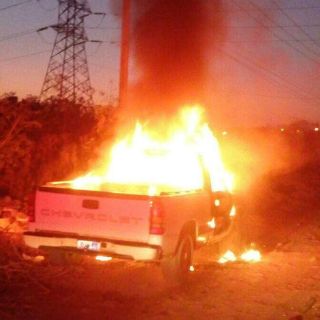Las autoridades informaron que la camioneta contaba con reporte de robo, por lo que se presume que fue abandonada en el lugar y posteriormente le prendieron fuego.