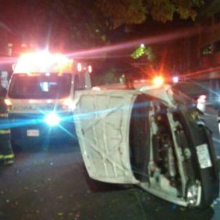 GUADALAJARA, JALISCO (10/DIC/2016).- La noche de este viernes se reportó la volcadura de un auto modelo Tsuru en la Zona Centro de Guadalajara, informaron bomberos municipales.