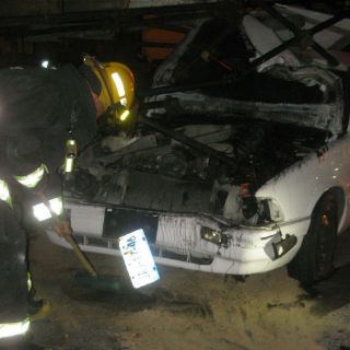 Bomberos tapatíos arribaron al lugar para realizar la limpieza del lugar, pues se derramó aceite y otros líquidos, además de los restos del automotor.