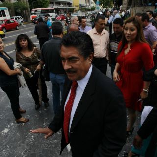 El alcalde Ramiro Hernández, quien estaba encerrado junto con los regidores antes de la sesión de Cabildo en donde se aprobaría el decreto de reubicación, abandonó sus oficinas debido al temblor que se registró esta mañana.