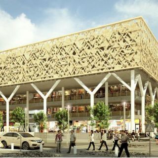 GUADALAJARA, JALISCO (25/JUL/2014).- El Mercado Corona tiene nueva cara: serán seis pisos donde habrá 589 locales comerciales, casi nueve mil metros cuadrados de oficinas y un estacionamiento subterráneo con 582 cajones de estacionamiento. El diseño, una celosía inspirada en la reinterpretación figurativa de las palomas de la cerámica de Tlaquepaque.