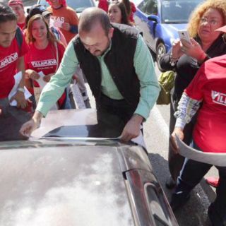 GUADALAJARA, JALISCO (30/DIC/2014).- Como parte del proceso de precampaña que inició desde el pasado 28 de diciembre, el precandidato a la alcaldía de Guadalajara por el PRI, Ricardo Villanueva acudió al cruce de las avenidas Federalismo e Hidalgo donde se acercó a automovilistas y pegó calcomanías con su nombre.