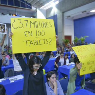 Ante las críticas de la población estudiantil de ITESO, el candidato aprovechó para aclarar que la compra de cien tabletas corrió a cargo de la Secretaría de Desarrollo Económico para un programa de capacitación en materia de empleo y emprendurismo. Dijo que dicha compra fue autorizada antes de abandonar la Secretaria de Planeación Administración y Finanzas.