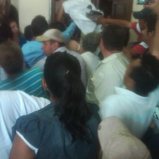 TLAJOMULCO, JALISCO (06/MAY/2011).- Un altercado físico impidió que la sesión de Ayuntamiento agendada para esta mañana en Tlajomulco de Zúñiga, llegara a término; elementos de la Policía Municipal acudieron al edificio de la Presidencia para controlar a un grupo de aproximadamente 50 opositores al Gobierno local, quienes trataron de irrumpir a la fuerza en la sala de cabildo, mientras la reunión del pleno se llevaba a cabo.